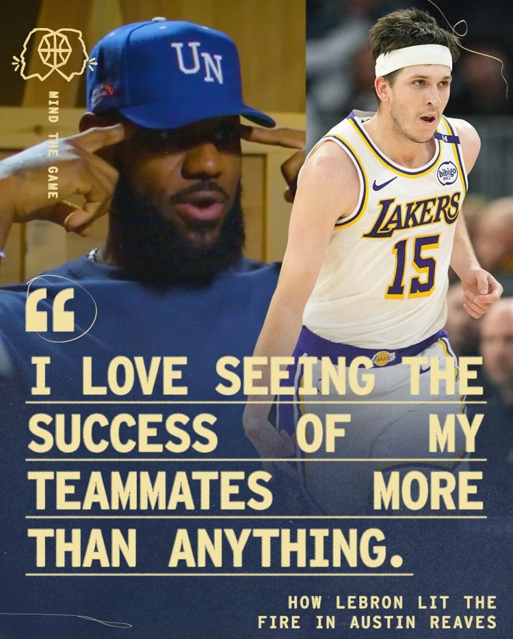 詹姆斯在节目中表示:“看到队友们的成功比任何事情都更让我开心,我们之前对阵孟菲斯的系列赛就是最好证明,那个系列赛不仅让我赢得里夫斯的信任,也让我坚信他能掌控局面。记得大概是第二或第三场(对方有主场优势),第四节关键时刻我就想着‘AR(里夫斯),去帮我们拿下胜利’。”