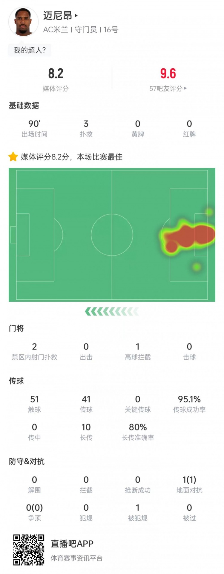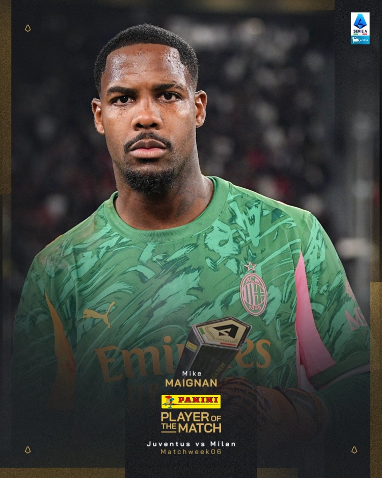 3次扑救+零封!迈尼昂当选米兰vs尤文全场最佳球员